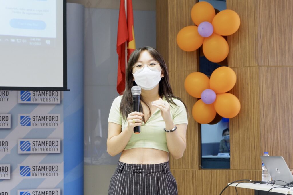 Ms. Hao Nguyen, a CMD student at Stamford International University, shared her study experience with the students.