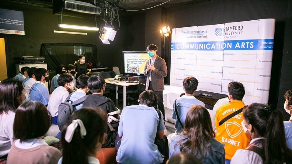 On Wednesday, August 31, 2022 at Stamford Studio, Rama 9 Campus, Communication Arts Program of Stamford International University organized “Mini Open House and Workshop” for high school students fromChindamanee School.