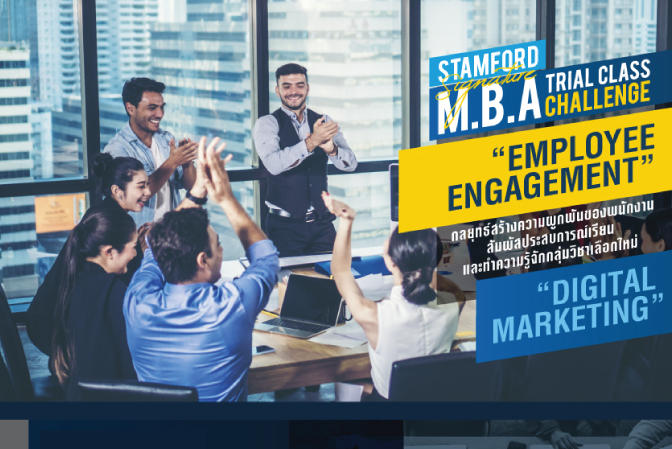 มาพบกันอีกครั้งในงาน Stamford MBA Trial Class รู้จักกลุ่มสาขาวิชาเลือกยอดนิยม 4 กลุ่ม รวมถึง กลุ่มวิชา“Digital Marketing” ที่เปิดใหม่ พร้อมร่วมกิจกรรมจำลองชั้นเรียน สัมผัสบรรยากาศการเรียน MBA จริง กับ ดร. เพชรรัตน์ โล้วิชากรติกุล อาจารย์ประจำหลักสูตร MBA กับห้วข้อ “Employee Engagement..กลยุทธ์สร้างความผูกพันของพนักงาน” พร้อมพูดคุยกับอาจารย์และเจ้าหน้าที่แนะแนว